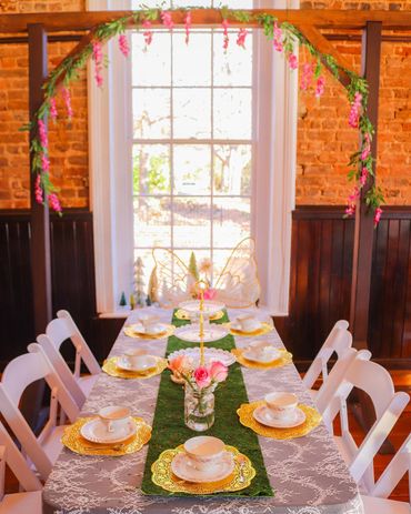 We had such a magical time planning Scarlett's fairy tea party 5th birthday! The Corner of Wake Forest was the perfect location for an early December event offering a beautiful rustic interior and an enchanted garden outside. The decor was both whimsical and fun and the little guests feasted on a gorgeous display of treats, finger foods and hot chocolate served in vintage tea cup china while the older guests also relished in a sparkling mimosa bar. The little fairies and gnomes enjoyed decorating their own fairy houses and embarking on an adventure filled scavenger hunt through the enchanted garden. This event was a dream to plan and a magical time was truly had by all, especially the birthday girl!